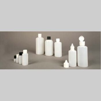 The cyclindrical liquid bottles take a range of closures, straight lids, flip-top caps and dropper inserts.